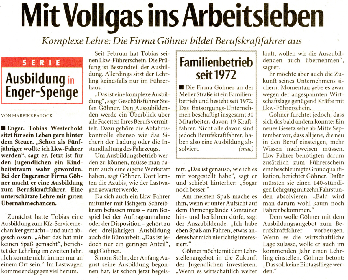 Mit Vollgas ins Arbeitsleben (09/2009)